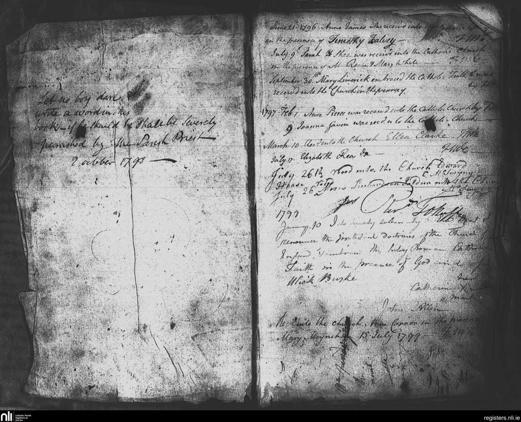 Ss Peter and Paul's, Cork city; County of Cork; Diocese of Cork and Ross. Baptisms, June 1796 to July 1799