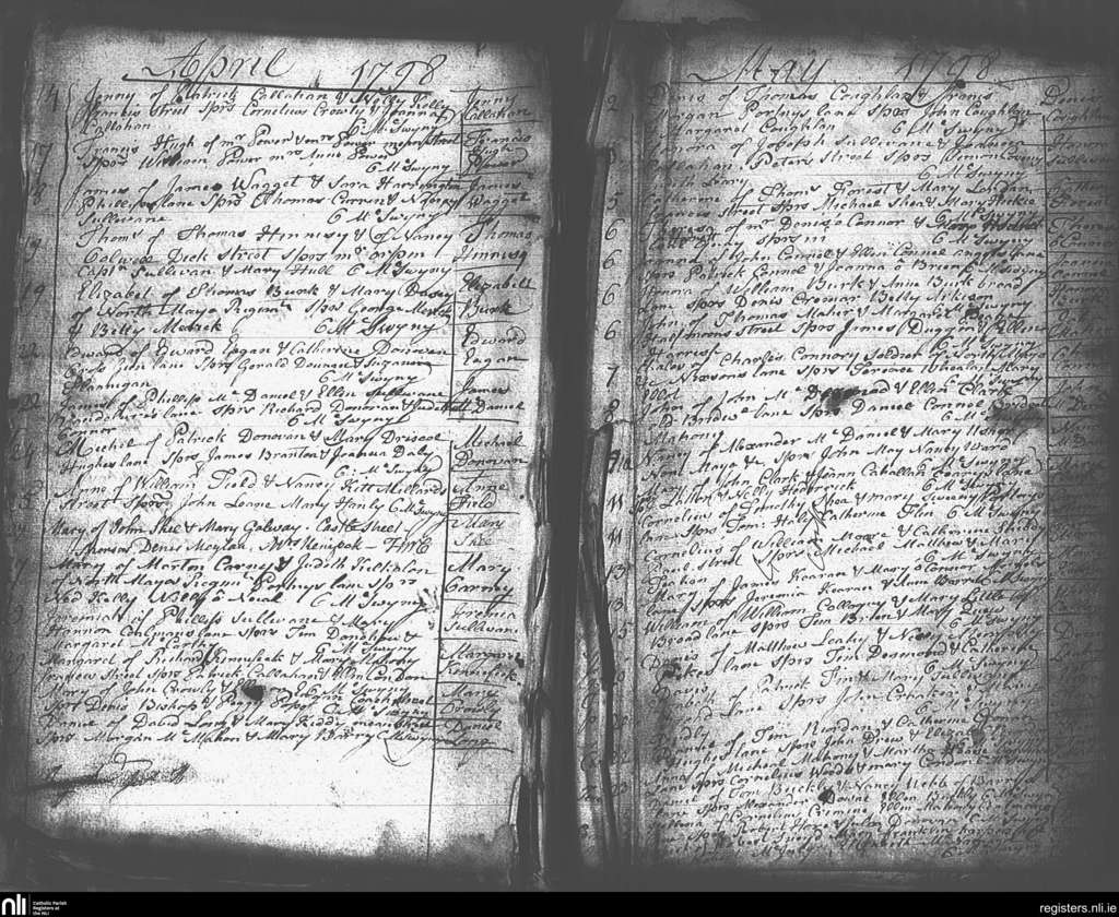 Ss Peter and Paul's, Cork city; County of Cork; Diocese of Cork and Ross. Baptisms, Apr. 1798 to May 1798