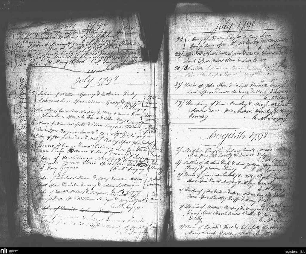 Ss Peter and Paul's, Cork city; County of Cork; Diocese of Cork and Ross. Baptisms, July 1798 to Aug. 1798