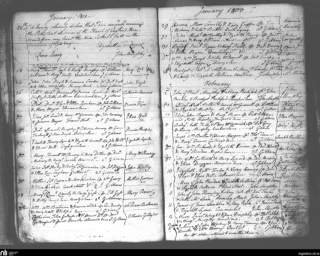 Ss Peter and Paul's, Cork city; County of Cork; Diocese of Cork and Ross. Baptisms, Jan. 1800 to Feb. 1800