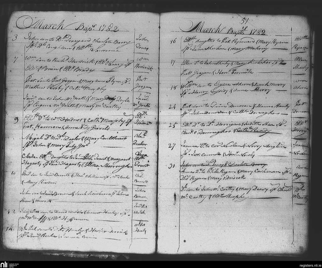 Ss Peter and Paul's, Cork city; County of Cork; Diocese of Cork and Ross. Baptisms, Mar. 1782