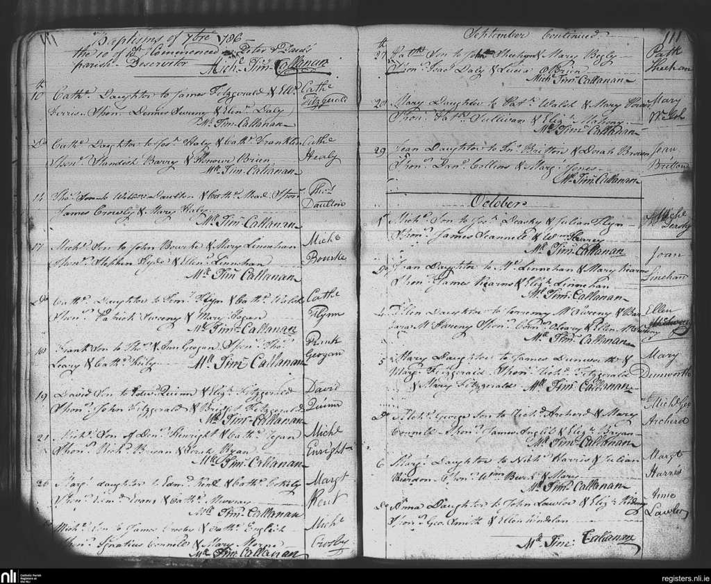 Ss Peter and Paul's, Cork city; County of Cork; Diocese of Cork and Ross. Baptisms, Sep. 1786 to Oct. 1786