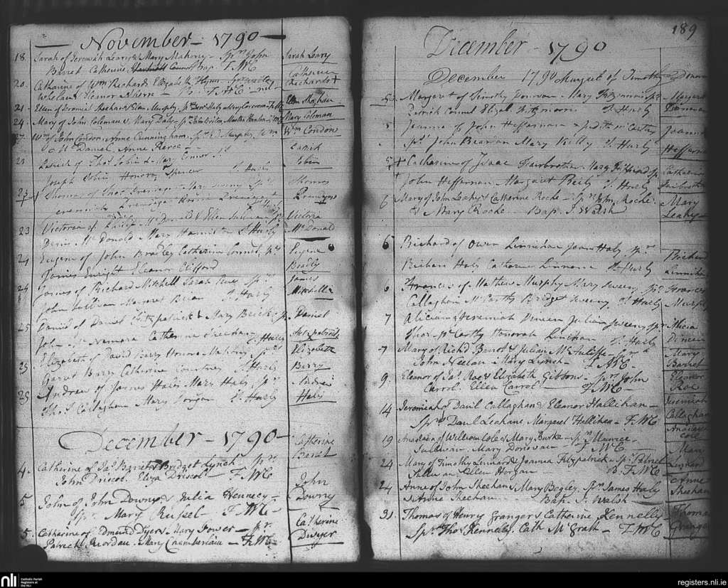 Ss Peter and Paul's, Cork city; County of Cork; Diocese of Cork and Ross. Baptisms, Nov. 1790 to Dec. 1790