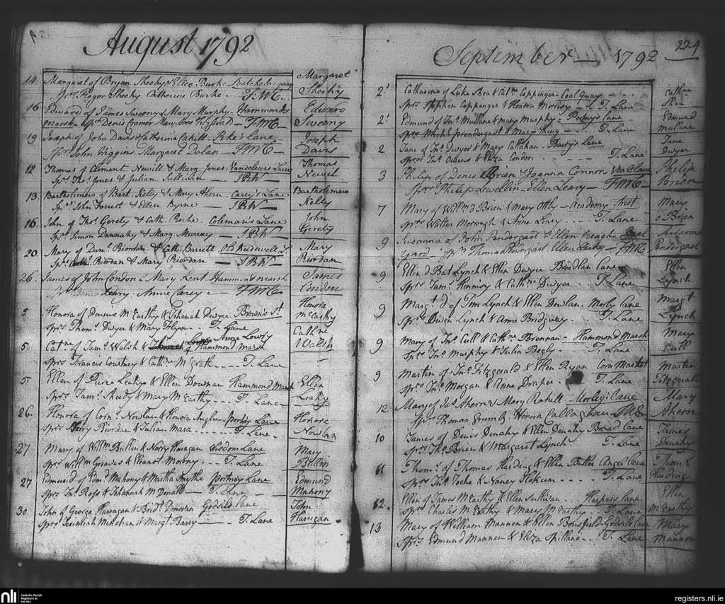 Ss Peter and Paul's, Cork city; County of Cork; Diocese of Cork and Ross. Baptisms, Aug. 1792 to Sep. 1792