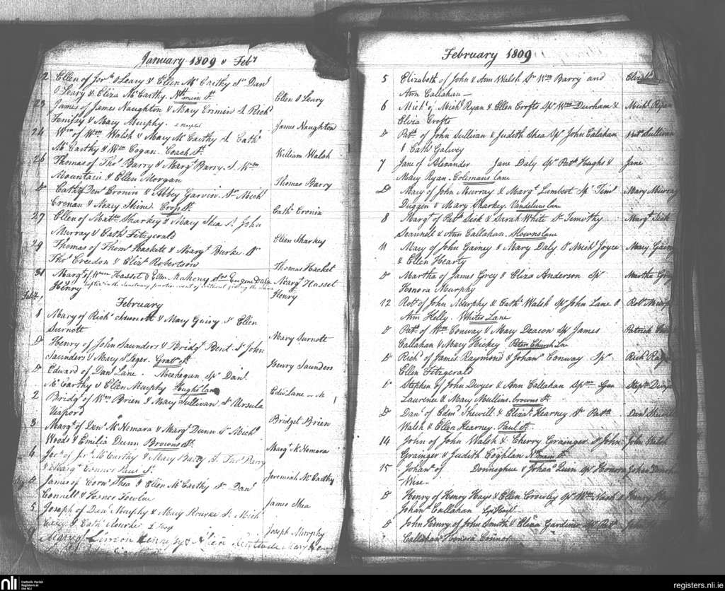 Ss Peter and Paul's, Cork city; County of Cork; Diocese of Cork and Ross. Baptisms, Jan. 1809 to Feb. 1809