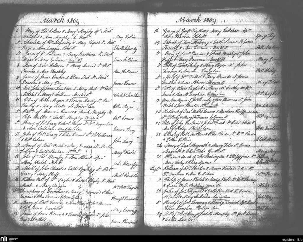 Ss Peter and Paul's, Cork city; County of Cork; Diocese of Cork and Ross. Baptisms, Mar. 1809
