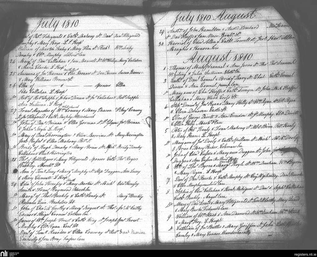 Ss Peter and Paul's, Cork city; County of Cork; Diocese of Cork and Ross. Baptisms, July 1810 to Aug. 1810
