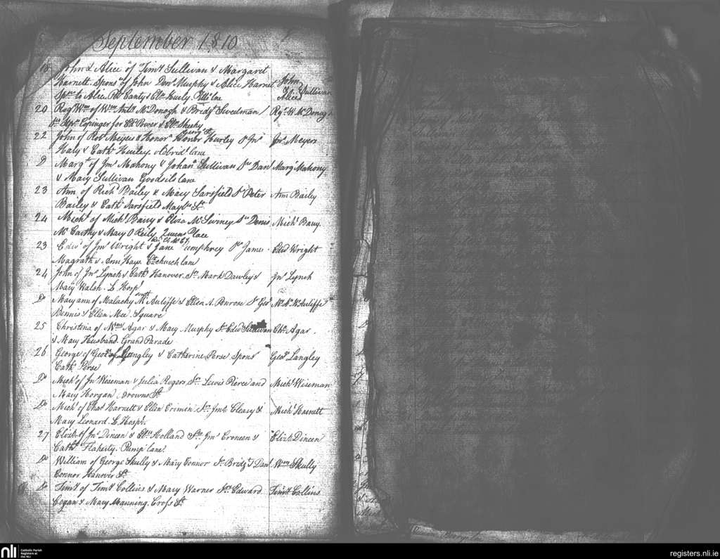 Ss Peter and Paul's, Cork city; County of Cork; Diocese of Cork and Ross. Baptisms, Sep. 1810