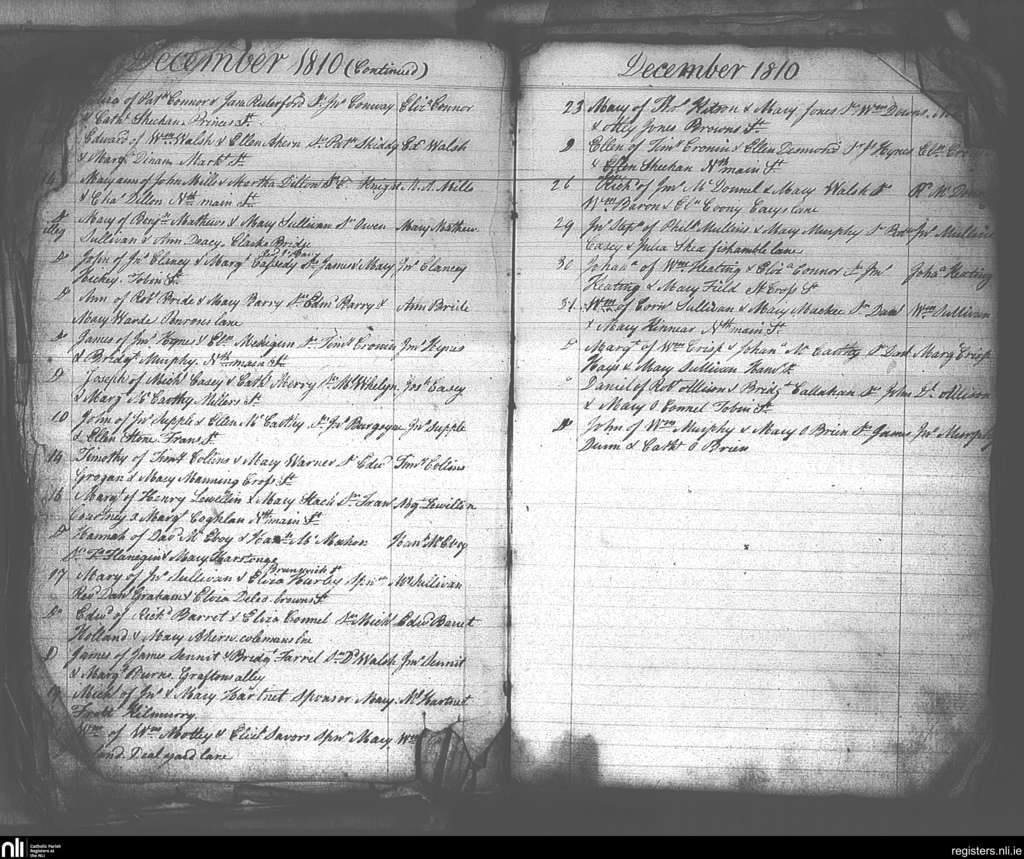 Ss Peter and Paul's, Cork city; County of Cork; Diocese of Cork and Ross. Baptisms, Dec. 1810