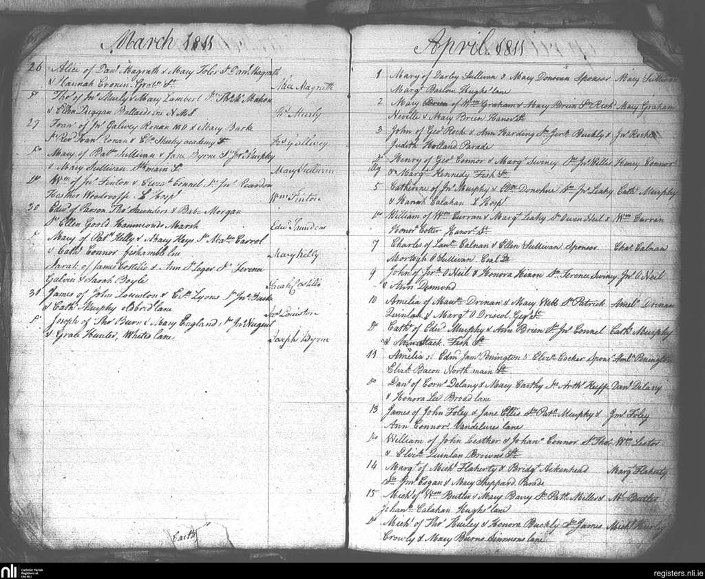 Ss Peter and Paul's, Cork city; County of Cork; Diocese of Cork and Ross. Baptisms, Mar. 1811 to Apr. 1811