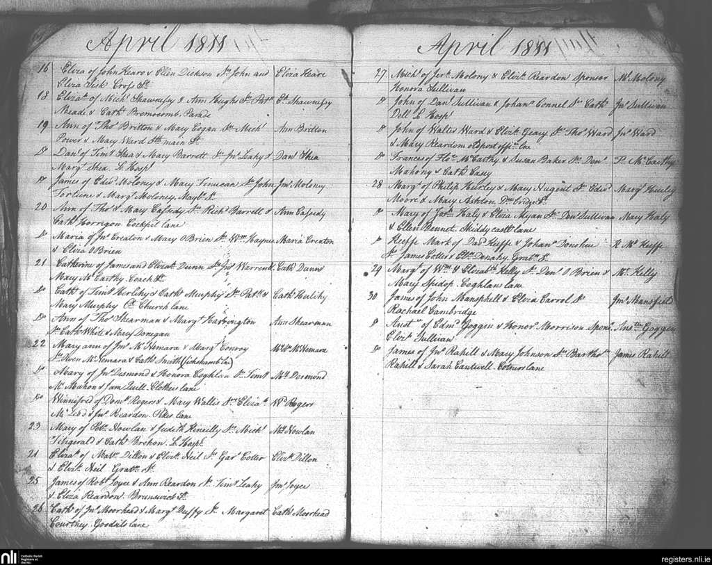Ss Peter and Paul's, Cork city; County of Cork; Diocese of Cork and Ross. Baptisms, Apr. 1811