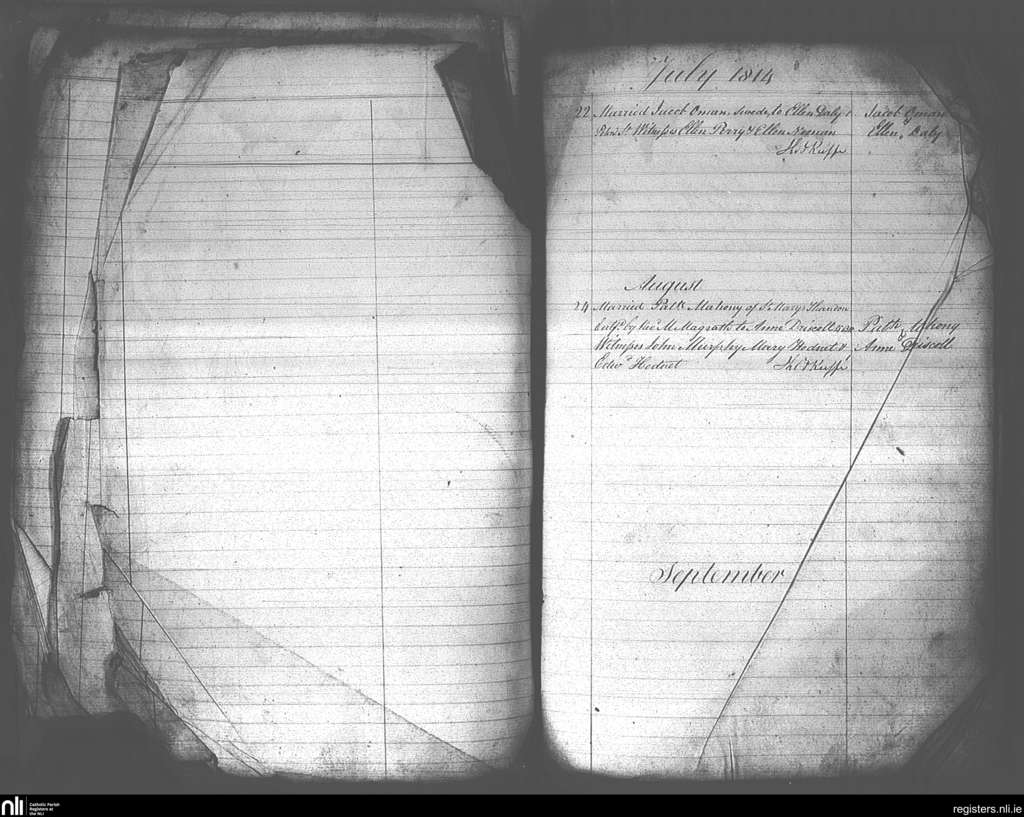 Ss Peter and Paul's, Cork city; County of Cork; Diocese of Cork and Ross. Marriages, July 1814 to Aug. 1814