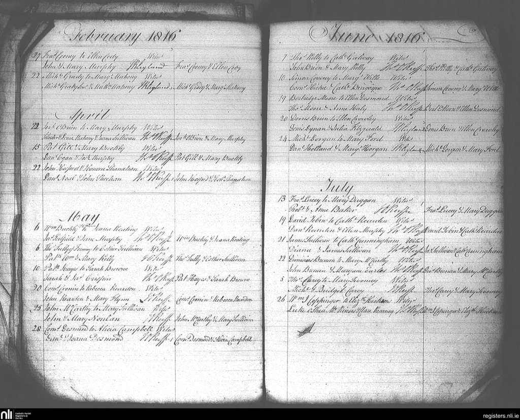 Ss Peter and Paul's, Cork city; County of Cork; Diocese of Cork and Ross. Marriages, Feb. 1816 to July 1816