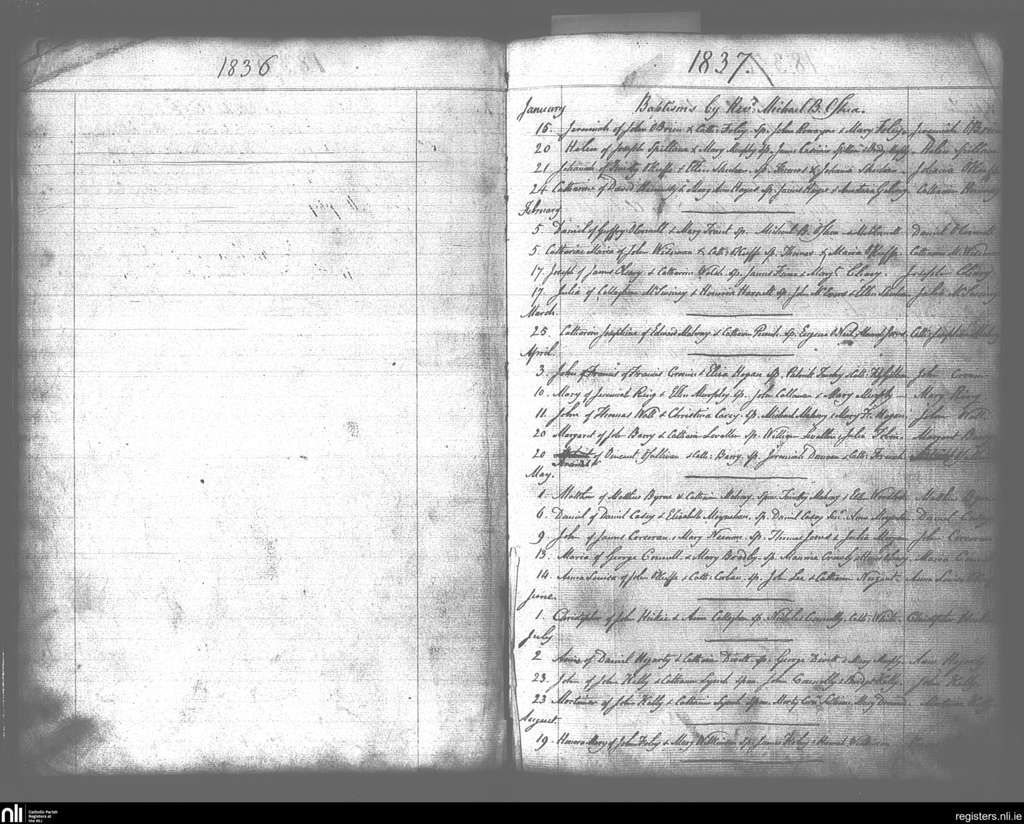 Ss Peter and Paul's, Cork city; County of Cork; Diocese of Cork and Ross. Baptisms, Jan. 1837 to Aug. 1837