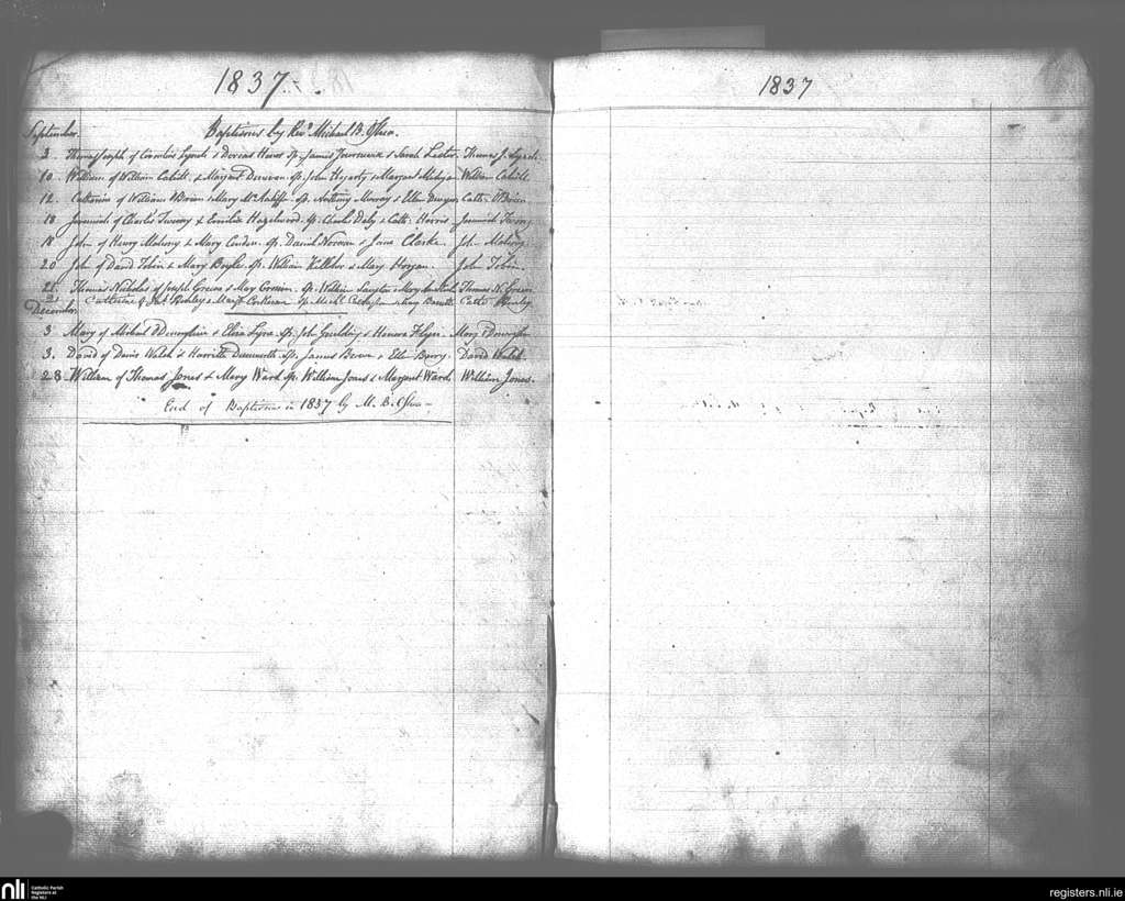 Ss Peter and Paul's, Cork city; County of Cork; Diocese of Cork and Ross. Baptisms, Sep. 1837 to Dec. 1837