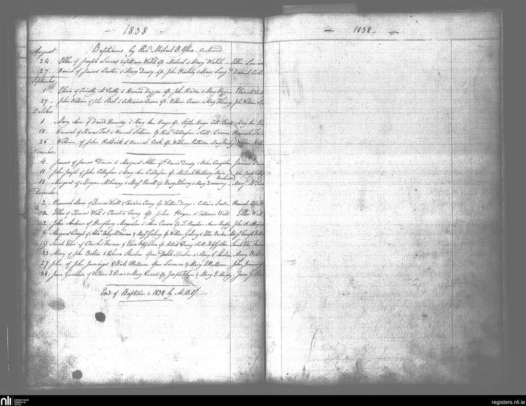 Ss Peter and Paul's, Cork city; County of Cork; Diocese of Cork and Ross. Baptisms, Aug. 1838 to Dec. 1838