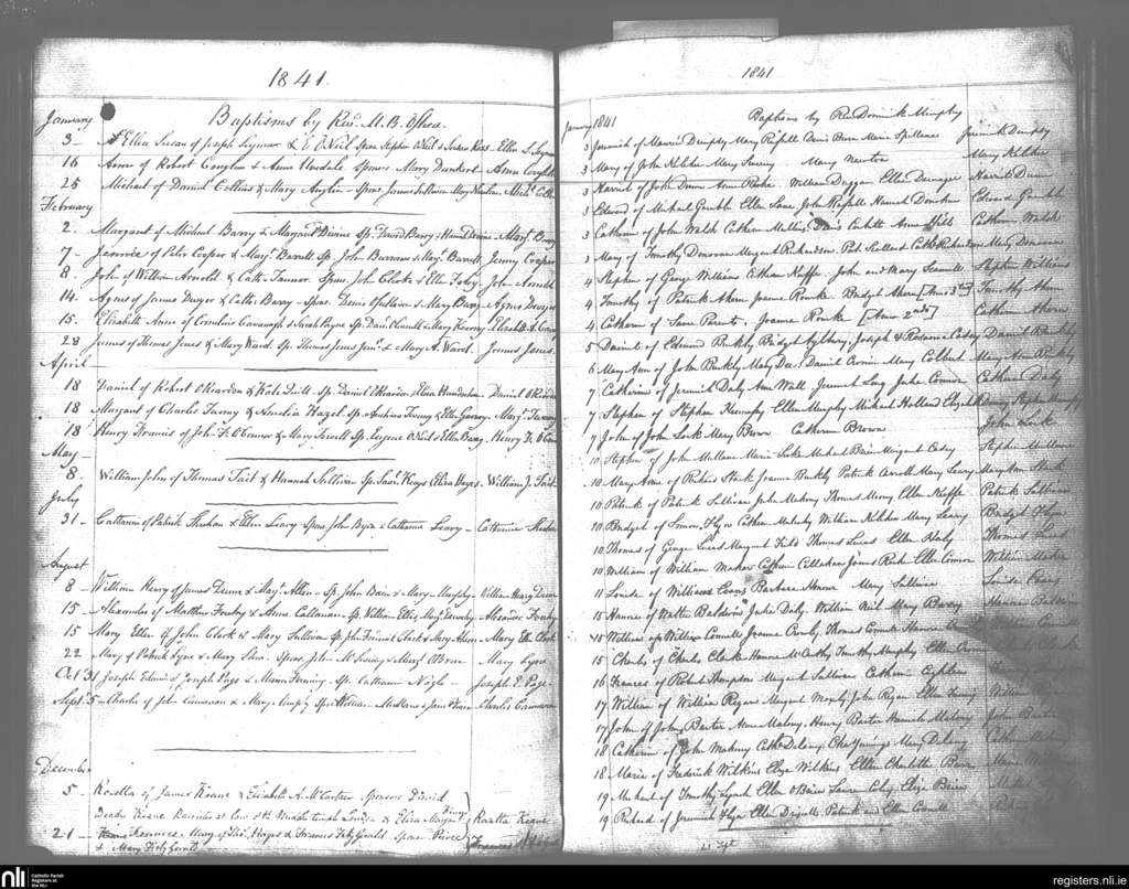 Ss Peter and Paul's, Cork city; County of Cork; Diocese of Cork and Ross. Baptisms, Jan. 1841 to Dec. 1841