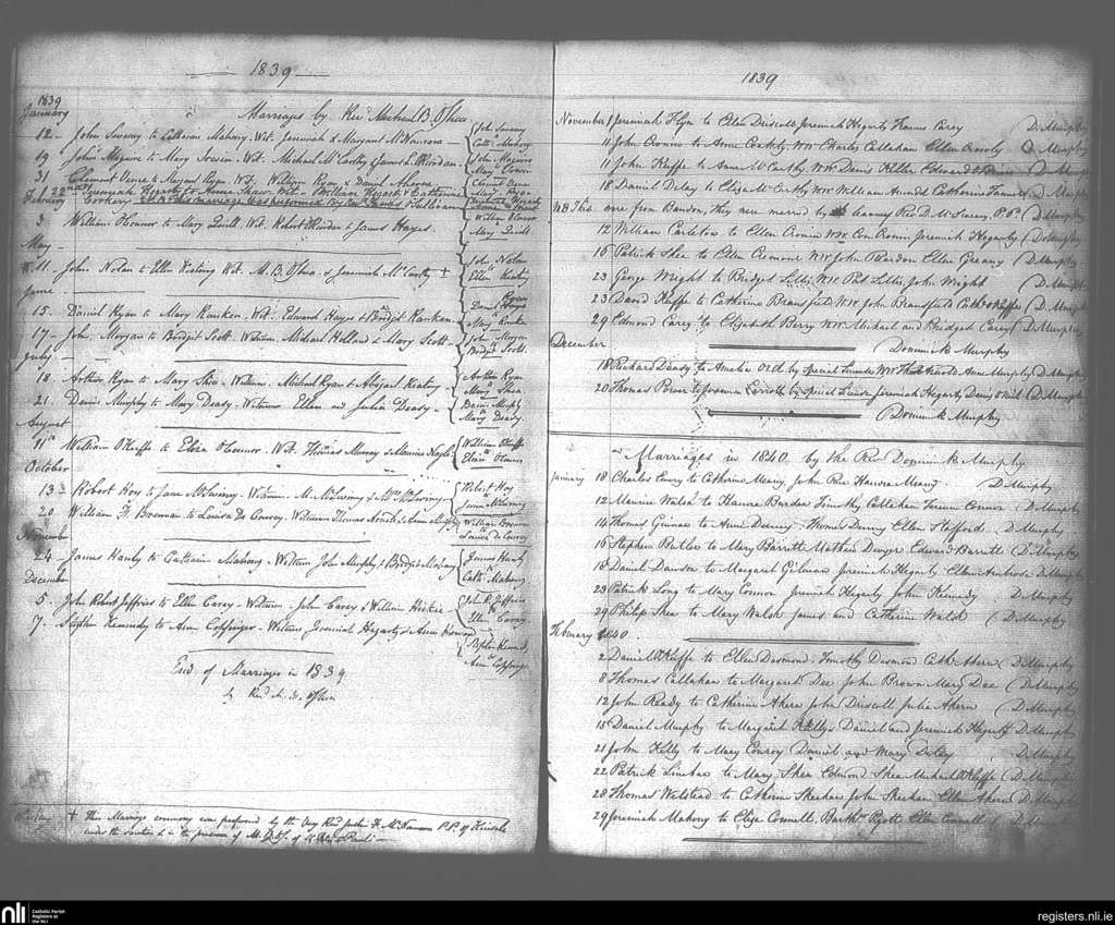 Ss Peter and Paul's, Cork city; County of Cork; Diocese of Cork and Ross. Marriages, Jan. 1839 to Feb. 1840