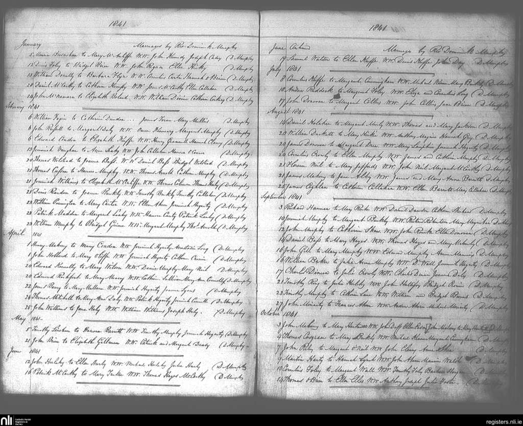 Ss Peter and Paul's, Cork city; County of Cork; Diocese of Cork and Ross. Marriages, Jan. 1841 to Oct. 1841
