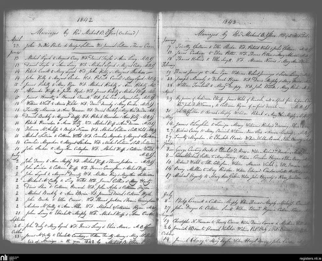 Ss Peter and Paul's, Cork city; County of Cork; Diocese of Cork and Ross. Marriages, Apr. 1842 to Oct. 1843
