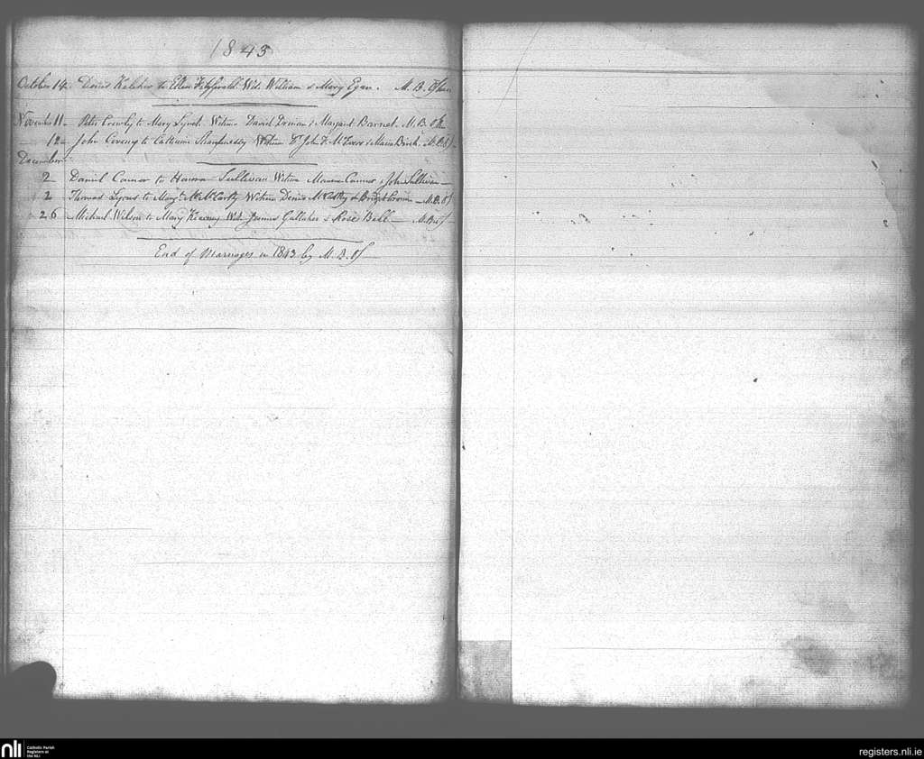 Ss Peter and Paul's, Cork city; County of Cork; Diocese of Cork and Ross. Marriages, Oct. 1843 to Dec. 1843