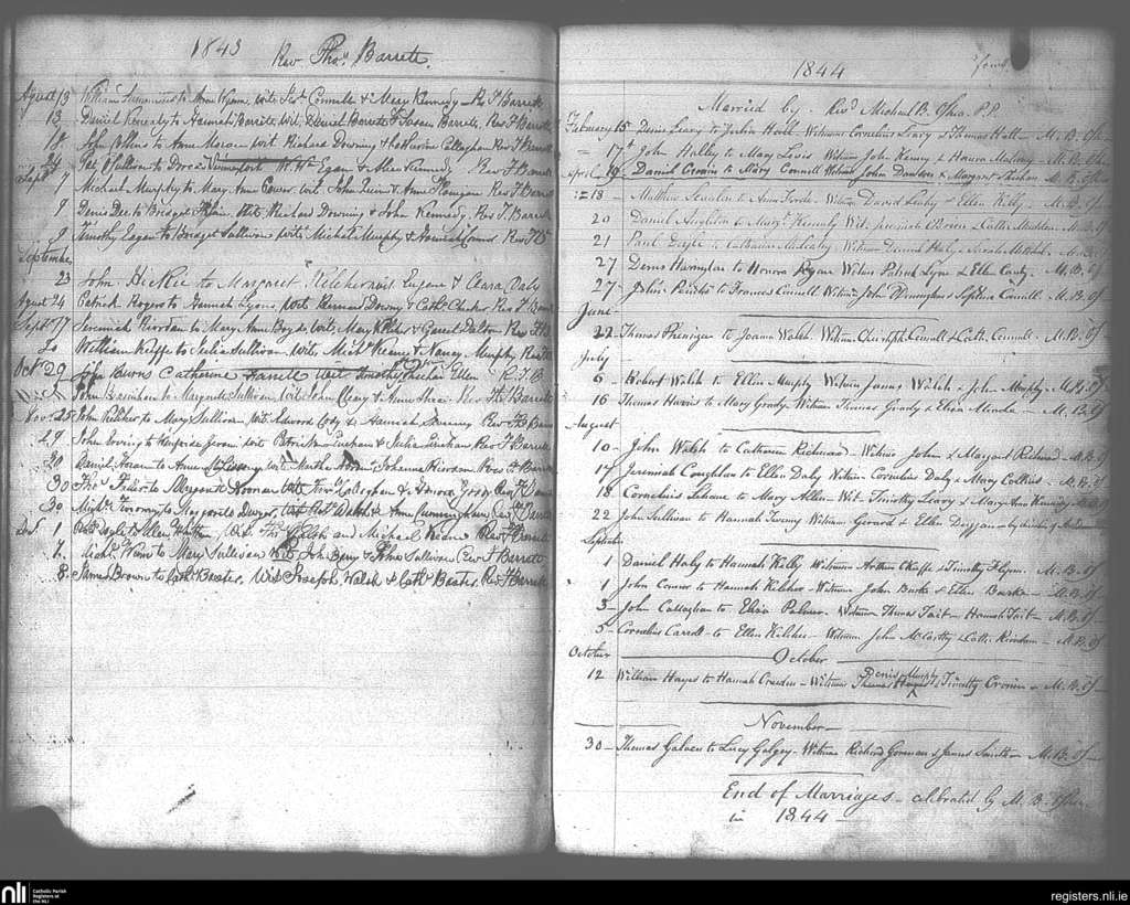 Ss Peter and Paul's, Cork city; County of Cork; Diocese of Cork and Ross. Marriages, Aug. 1843 to Nov. 1844