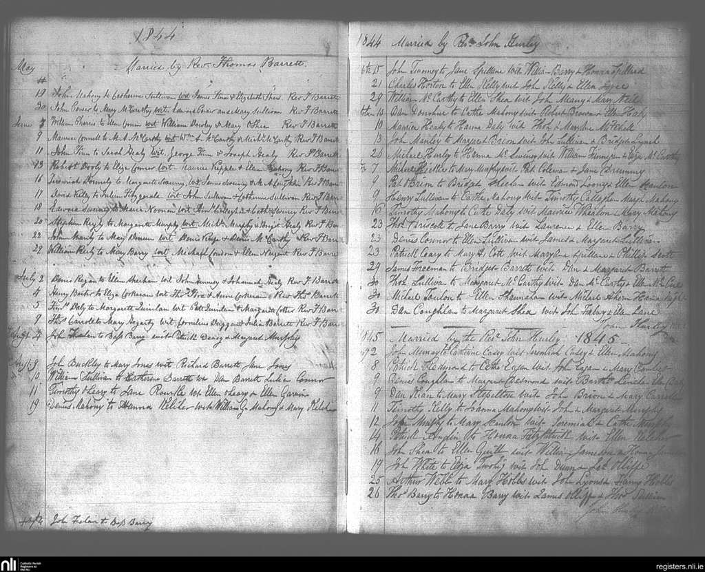 Ss Peter and Paul's, Cork city; County of Cork; Diocese of Cork and Ross. Marriages, May 1844 to Jan. 1845