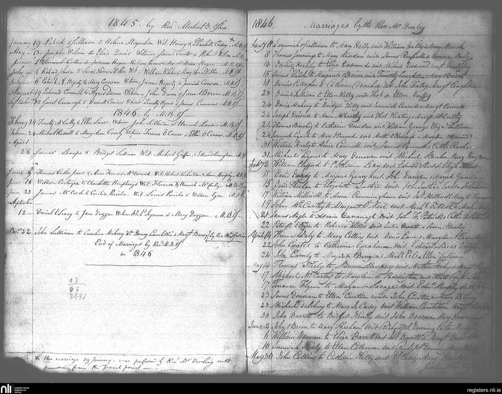 Ss Peter and Paul's, Cork city; County of Cork; Diocese of Cork and Ross. Marriages, Jan. 1845 to Nov. 1846