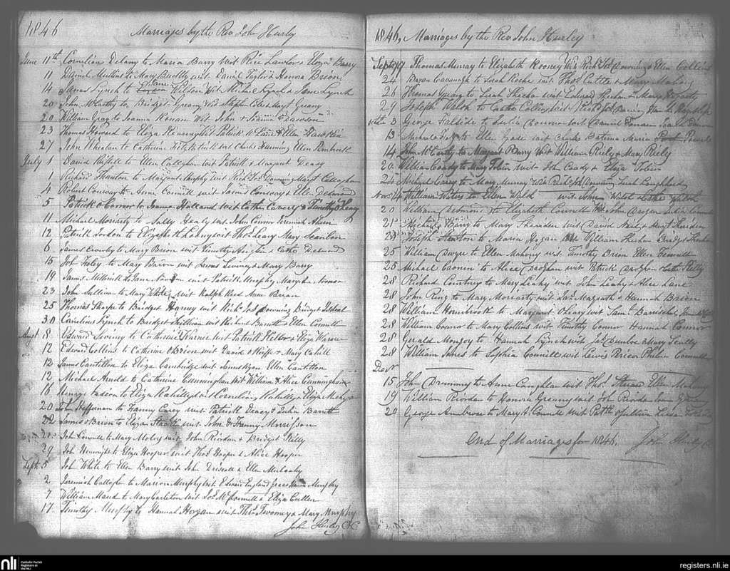 Ss Peter and Paul's, Cork city; County of Cork; Diocese of Cork and Ross. Marriages, June 1846 to Dec. 1846