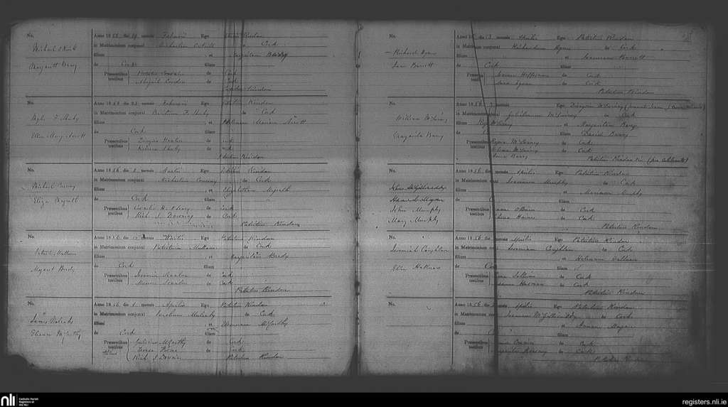 Ss Peter and Paul's, Cork city; County of Cork; Diocese of Cork and Ross. Marriages, Feb. 1856 to Apr. 1856