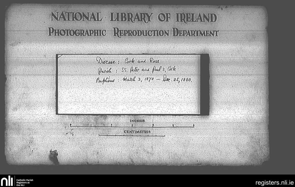 Ss Peter and Paul's, Cork city; County of Cork; Diocese of Cork and Ross. Baptisms