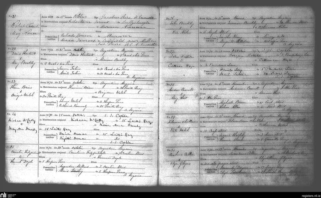 Ss Peter and Paul's, Cork city; County of Cork; Diocese of Cork and Ross. Marriages, Oct. 1870 to Nov. 1870