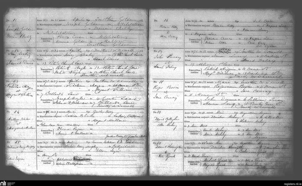 Ss Peter and Paul's, Cork city; County of Cork; Diocese of Cork and Ross. Marriages, Apr. 1871 to May 1871