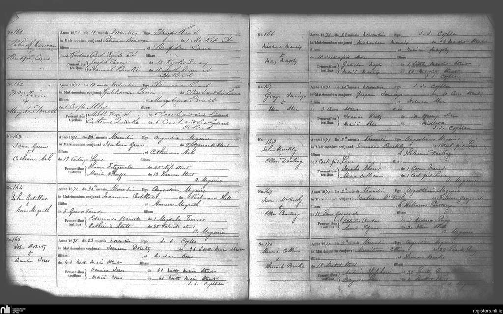 Ss Peter and Paul's, Cork city; County of Cork; Diocese of Cork and Ross. Marriages, Nov. 1871