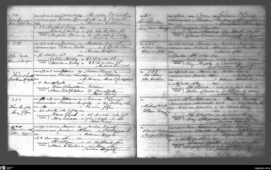 Ss Peter and Paul's, Cork city; County of Cork; Diocese of Cork and Ross. Marriages, Dec. 1872 to Feb. 1873