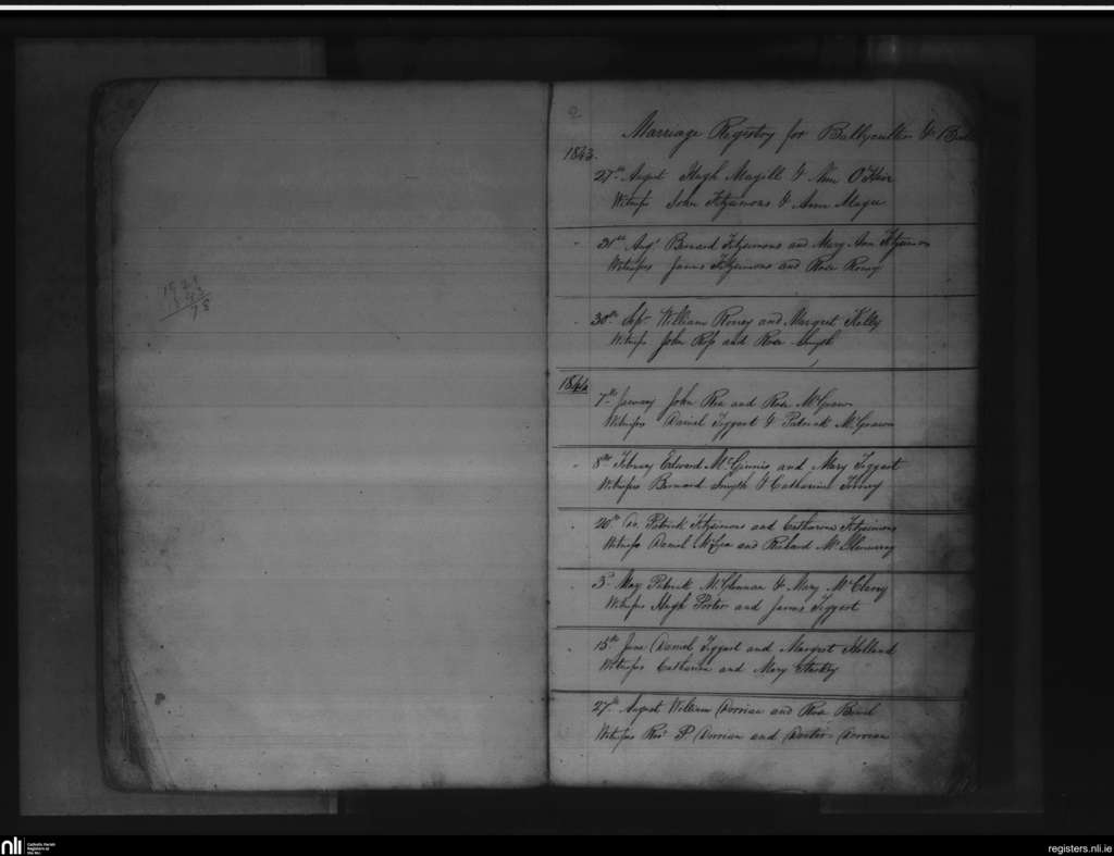 Ballyculter; County of Down; Diocese of Down and Connor. Marriages, Aug. 1843 to Aug. 1844