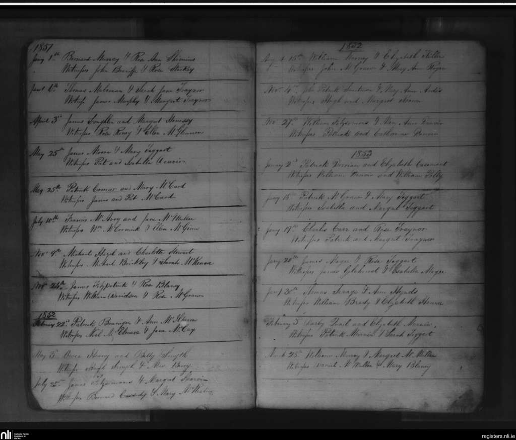 Ballyculter; County of Down; Diocese of Down and Connor. Marriages, Jan. 1851 to Feb. 1853