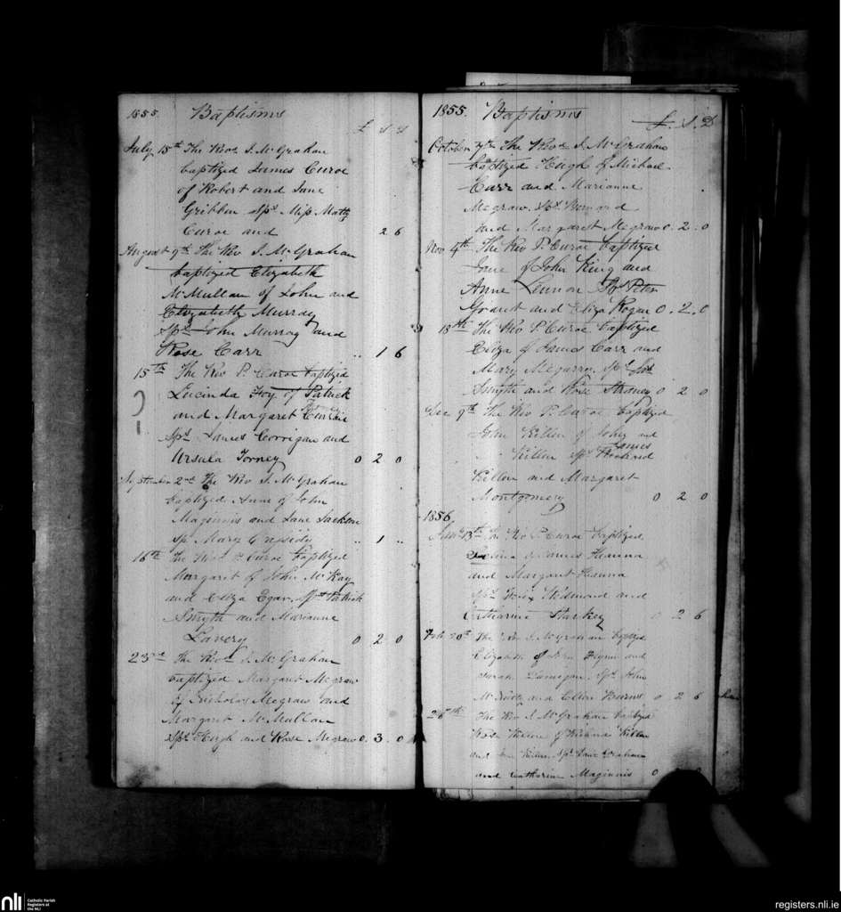 Tyrella; County of Down; Diocese of Down and Connor. Baptisms, July 1855 to Feb. 1856