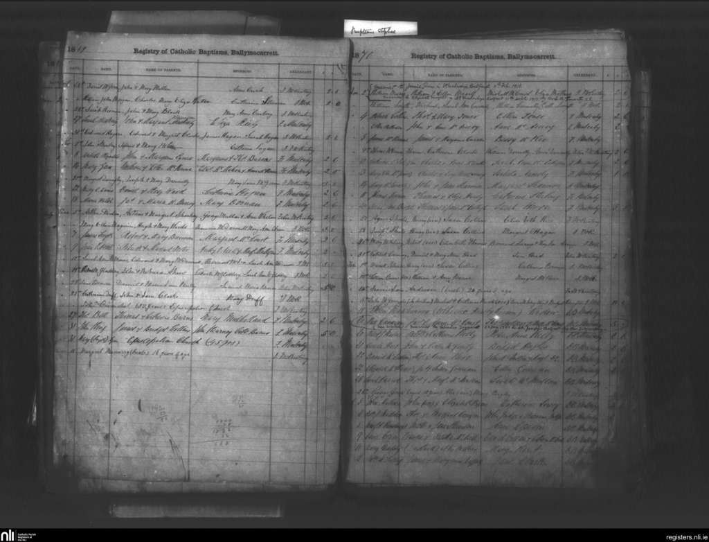 St. Mathew's, Ballymacarrett, Belfast city; County of Antrim; Diocese of Down and Connor. Baptisms, Oct. 1869 to Mar. 1870