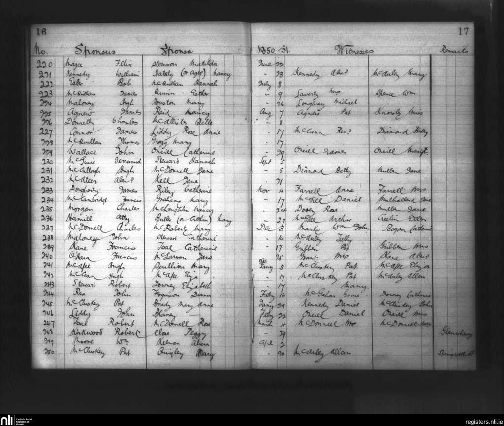 Kirkinriola; County of Antrim; Diocese of Down and Connor. Marriages, June 1850 to Apr. 1851