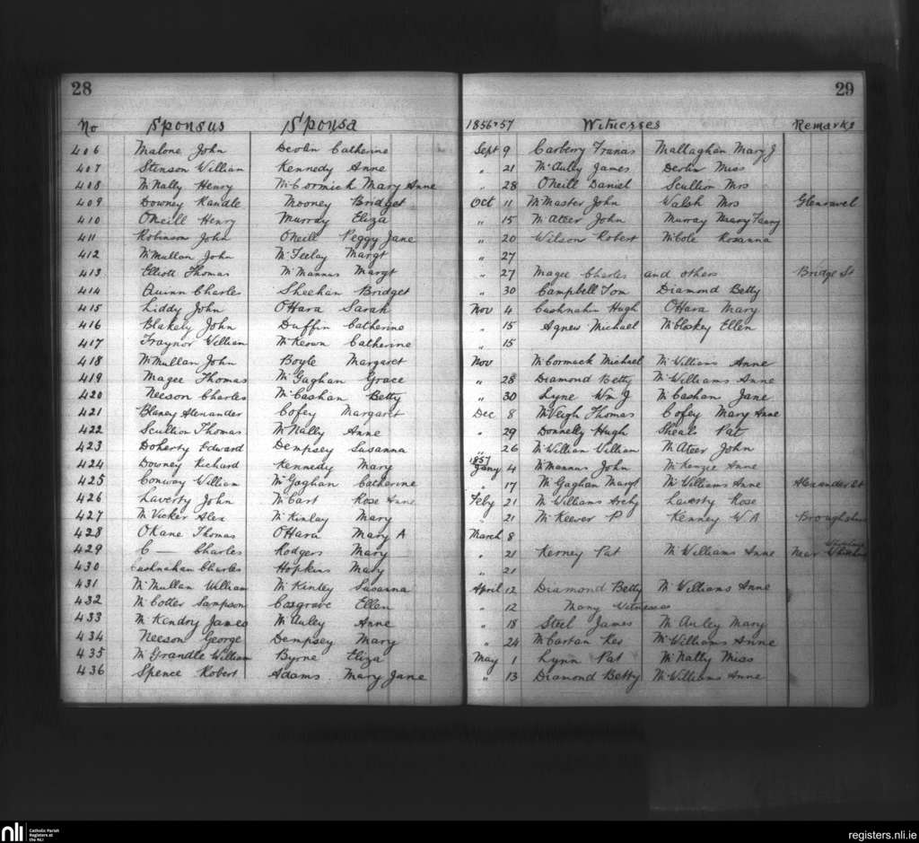 Kirkinriola; County of Antrim; Diocese of Down and Connor. Marriages, Sep. 1856 to May 1857
