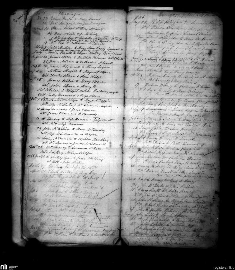 Kirkinriola; County of Antrim; Diocese of Down and Connor. Marriages, Feb. 1855 to Dec. 1856