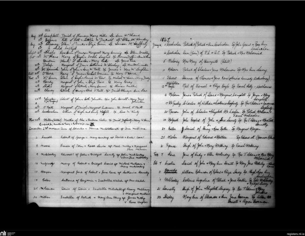 Kirkinriola; County of Antrim; Diocese of Down and Connor. Baptisms, Aug. 1866 to Feb. 1867