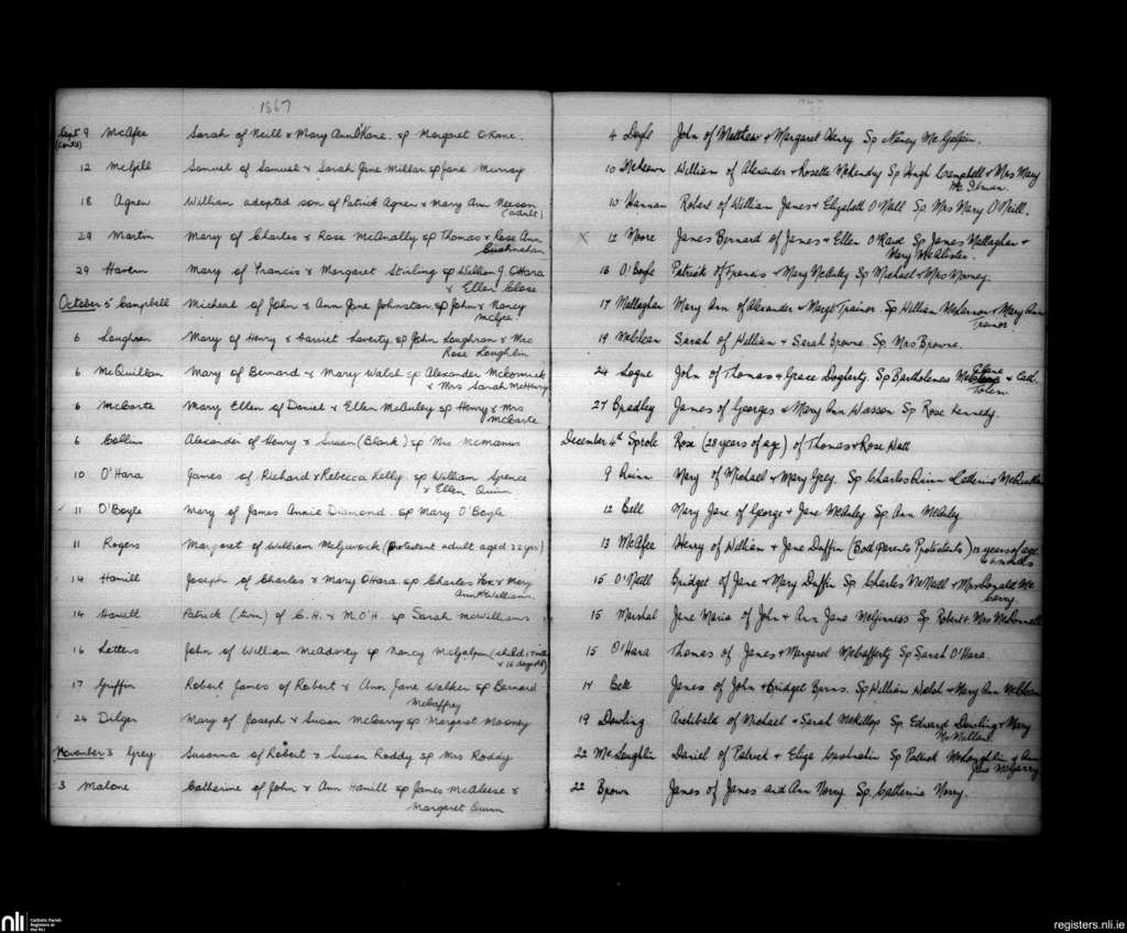 Kirkinriola; County of Antrim; Diocese of Down and Connor. Baptisms, Sep. 1867 to Dec. 1867