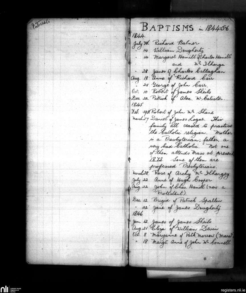 Portrush; County of Antrim; Diocese of Down and Connor. Baptisms, July 1844 to Oct. 1846