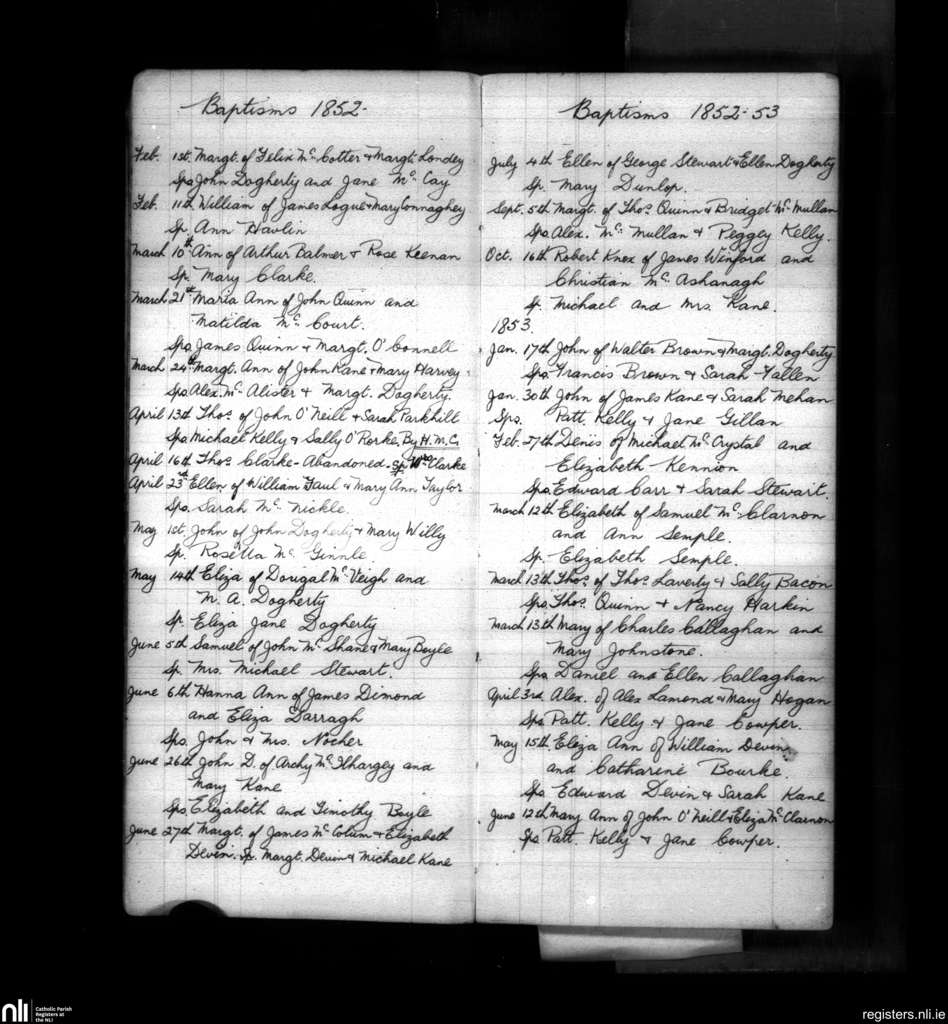 Portrush; County of Antrim; Diocese of Down and Connor. Baptisms, Feb. 1852 to June 1853