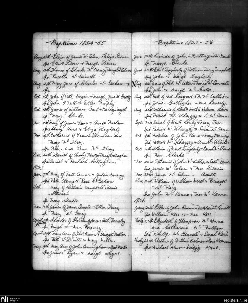Portrush; County of Antrim; Diocese of Down and Connor. Baptisms, Aug. 1854 to Feb. 1856