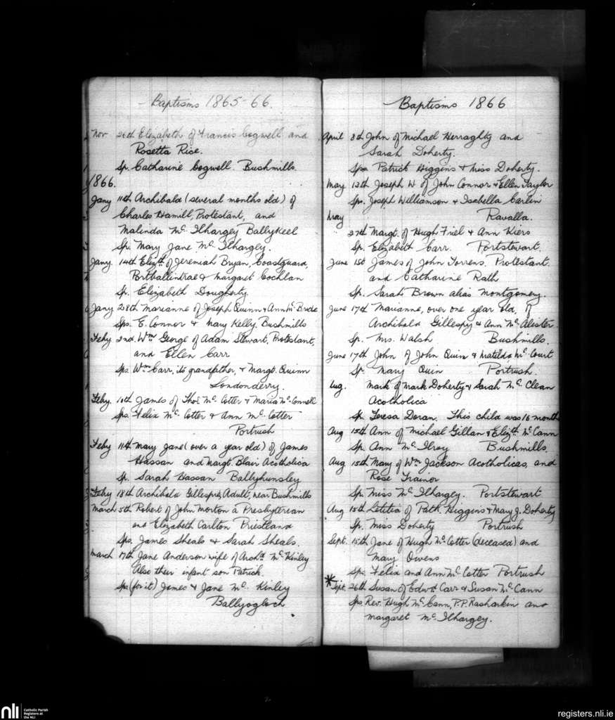 Portrush; County of Antrim; Diocese of Down and Connor. Baptisms, Nov. 1865 to Sep. 1866