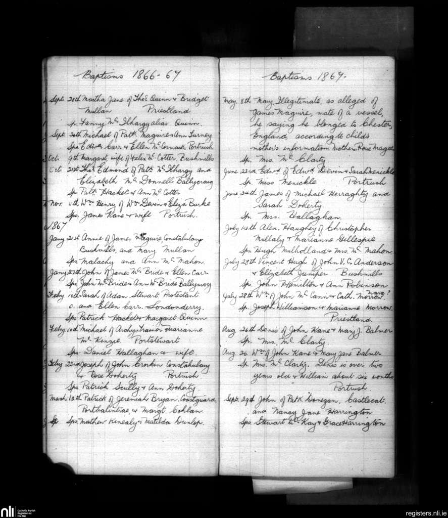 Portrush; County of Antrim; Diocese of Down and Connor. Baptisms, Sep. 1866 to Sep. 1867