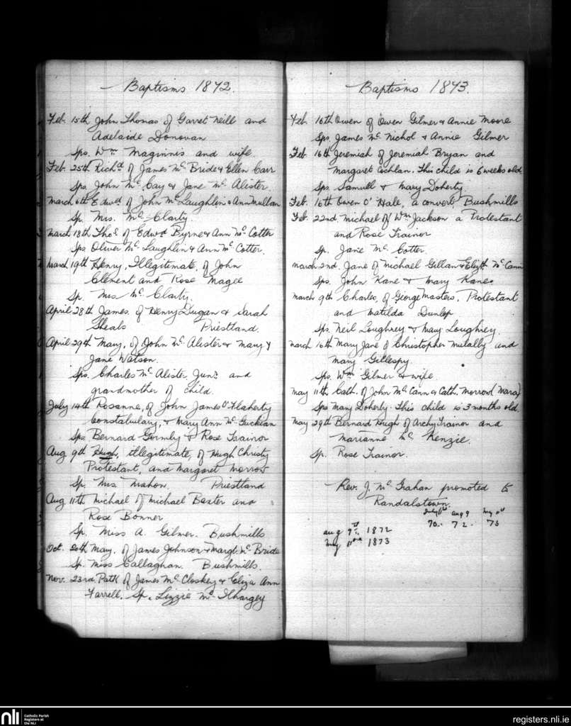 Portrush; County of Antrim; Diocese of Down and Connor. Baptisms, Feb. 1872 to May 1873